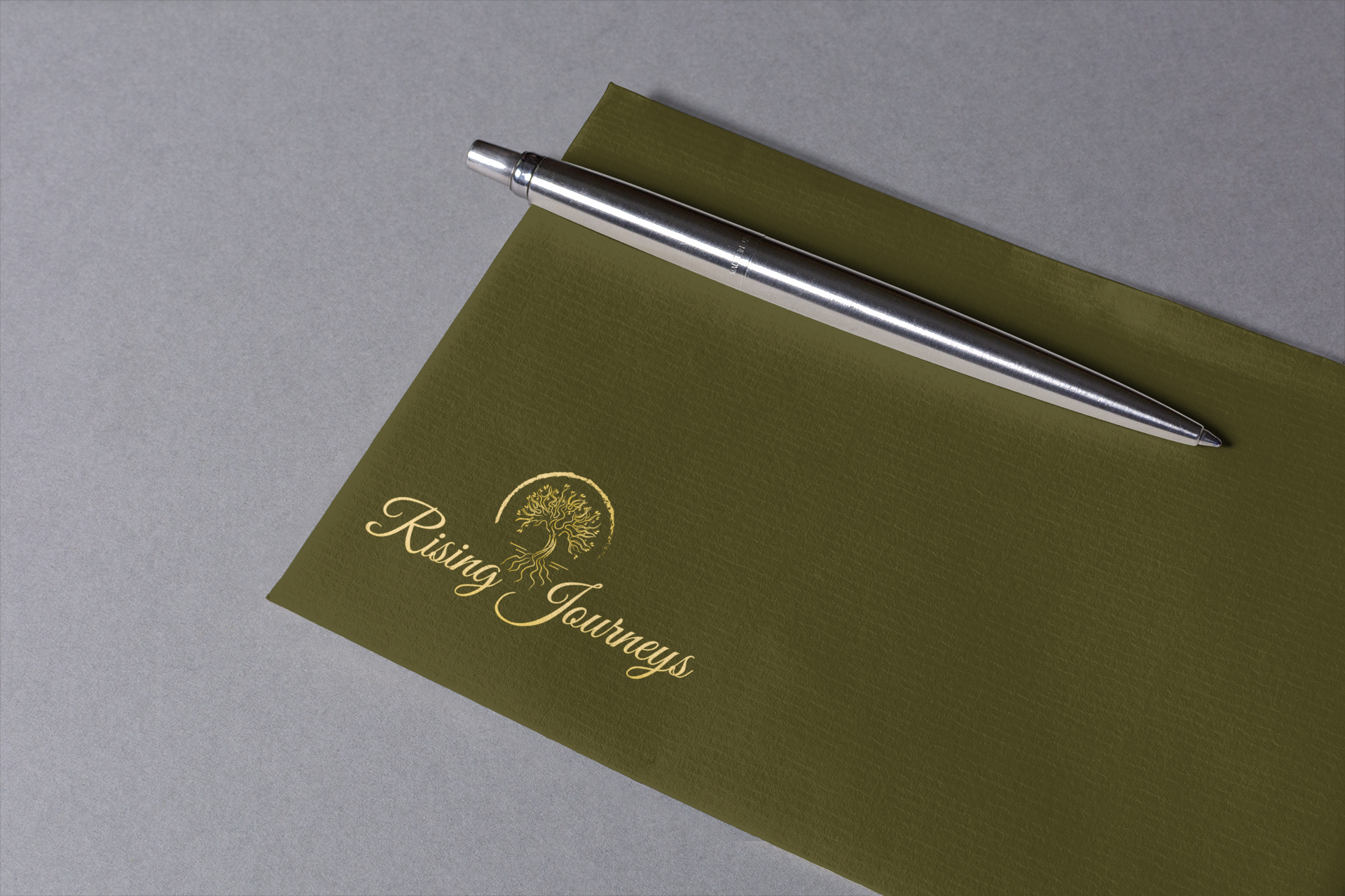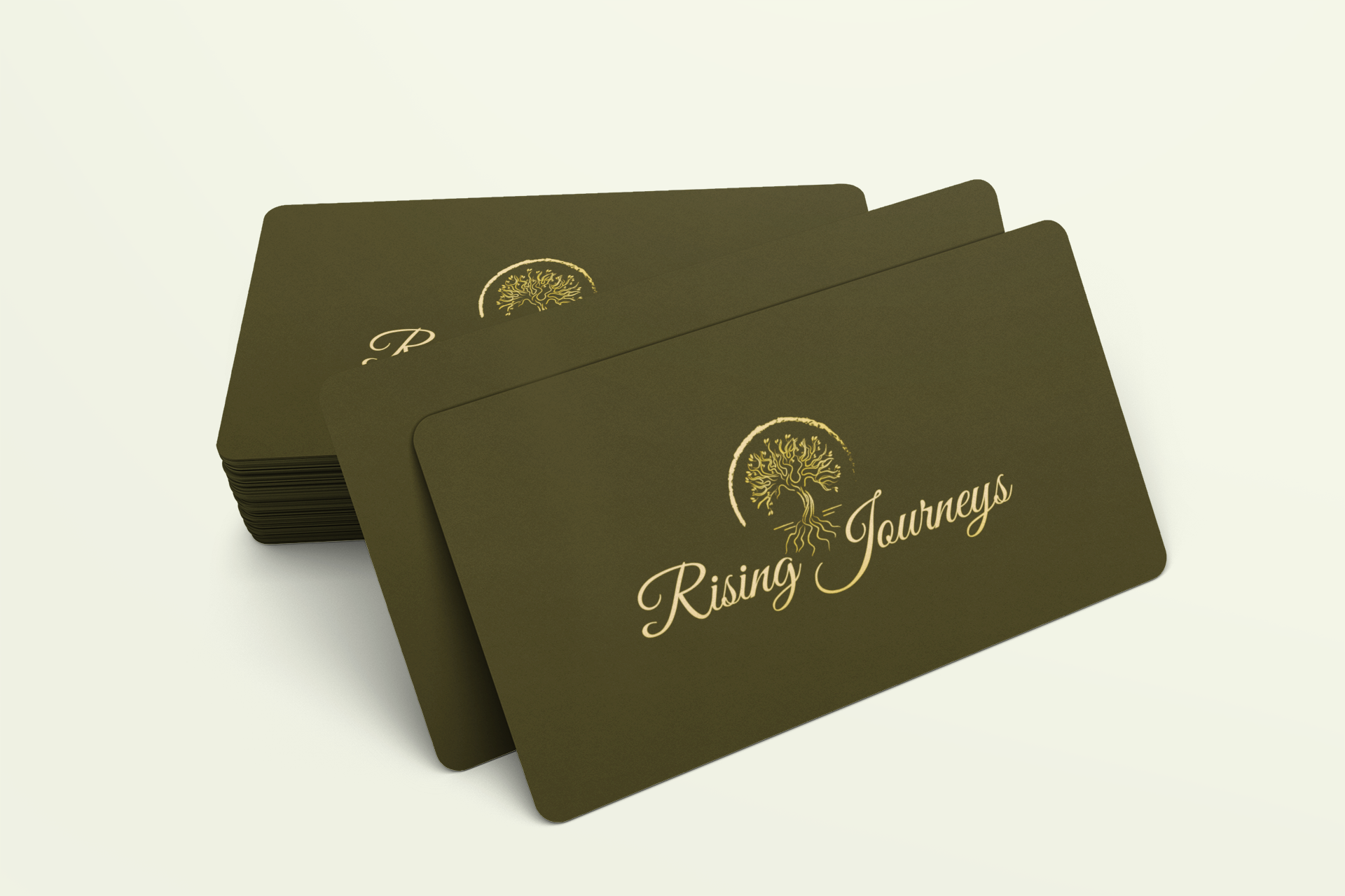 The Result: The final logo captures growth, balance, and unity through organic linework and earthy tones. The client was thrilled with the result and now proudly features the logo on her website, marketing materials, and business cards. Rising Journeys stands as a true reflection of mindful travel and design with purpose.